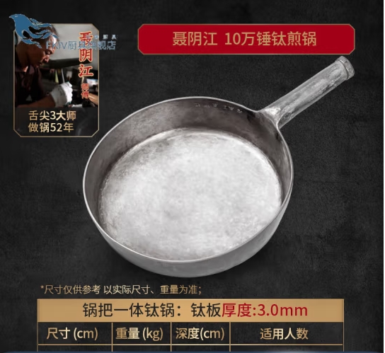 【一体钛锅】老聂家 纯钛炒锅章丘铁锅手工家用无涂层不粘锅老式炒菜锅锅把一体钛锅 聂阴江锅把一体32cm